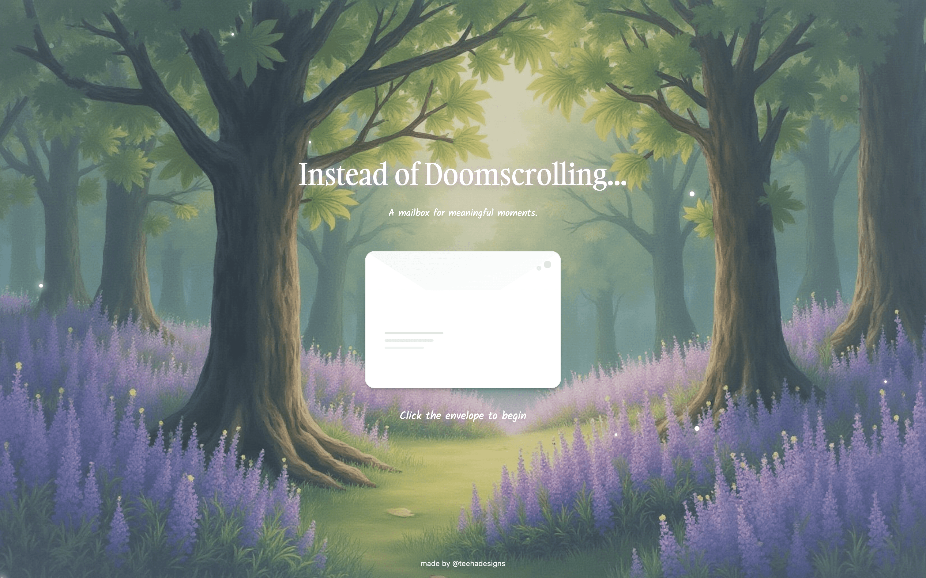 Instead of Doomscrolling is a playful mini-project I created with Lovable AI, designed to gently interrupt your scroll spiral with kinder options. It takes the form of a sweet little letter—think soft nudges, not guilt trips—suggesting mindful things you could do instead of sinking deeper into the doomscroll void. Coded and styled entirely with Lovable AI, this project was a lighthearted way for me to explore creative tech while calling out a habit we all fall into (yes, even me).